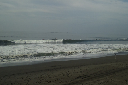 AM6:50 起床。スーパーカブで「チサン」Pへ波チェックに。サイズはヒザ…。天気はどんより曇りで肌寒い。弱いオンショアでちょっと面がざわついていて、ロングでテイクオフが何とかできるけど横に行ってハイおしまい!って感じのやる気無いコンディション…。帰ってソッコウ寝ました。