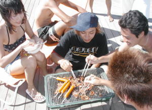 PM15:30 今日は夜から、以前(2001年12月)に宮崎シーガイアトリップにも一緒にいった、町くんの結婚パーティーがあるので、その打ち合わせのためもう帰らなくてはいけなくなった。女の子たちは口をそろえて残念がり、「最後に私たちと写真を撮ってください!」と泣きすがるので、しかたなく写真を撮ってあげた。