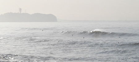 AM6:30 起床。う~ん、たっぷり寝たので爽やかな目覚めだ。昨日から天気をチェックしていたが、間違い無く湘南にも波がある!と思い込み、波チェック無しでそのままウェットに着替え、バナナ&牛乳を流し込んでチャリンコでGO!天気がいいなぁ♪そして「チサン」P正面に到着。ここでコウキと合流。さて、コンディションは、風は弱いオフショア。波は胸~肩、セットでオーバーヘッドだが、アウトで割れた波は少々トロ厚めでと、途中でうねりに戻ってしまうダラダラブレイク。セット間隔も長めだ。サーファーは多くないし、なんせ面ピタだしここが一番サイズがあったので即入水!