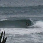 AM8:00 「船小屋」P到着。とりあえず天気は最高だ~!で、波。う~ん…たしかに台風のうねりは届いていた。とってもワイドでダンパーな波がね!風は弱いオフショア、サイズは腹~肩、セットが入ると頭サイズだ。でも、セットは壁のごとくつながっていて、とてもじゃないが抜けることは出来ないであろうダンパー!「船小屋」Pには丁度夜勤明けで波チェックに来ていた阿部くんがいて、「すげーダンパーだねー、どうしよっかなー…とりあえず家帰って、コーヒーでも飲んでから考えるわー!」と、お疲れモードだった阿部くんだったが、「元気があったら来てね~!」と別れを告げ、入水した。ちょっとしたらネギちゃんもやってきた。やっぱり厳しいコンディションだ。セットの合間の波がたまに切れていて、まぁまぁロングライドできる感じだ。