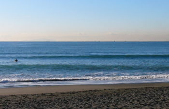 AM9:00 「船小屋」Pはサーファーの姿はパラパラとまばら。情報よりもワンサイズ、いや、ツーサイズくらいスモールだ。風はオフショアで面はクリーンなんだけど、うねりが思ってたよりも入ってない…。でも、サーモインナー&サーモウェストベルト&ブーツ&グローブ&耳栓の防寒対策ばっちり状態なので、入水。天気が良いから海水の冷たさもそんなに酷じゃないかな。波はモモ、たまにセットで腰くらい。インサイドのパワーの無いたるめのブレイクだ。何気に今年一発目の久々サーフなので、リハビリがてらにゆっくりのんびりとやらせてもらいました。
