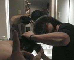 おいらの髪が伸びてきていたので、バリカンショータイム!汚れてもいい格好で石ちゃんにバリカンしてもらいました。