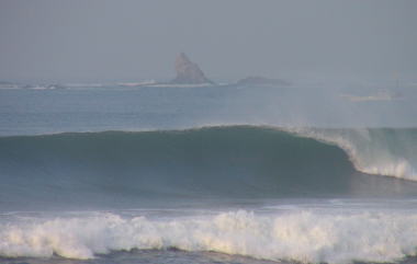 「チーパー」Pのほうはワンサイズ小さめで、ゲットもそんなに厳しくなさそう。サーファーも多少いて、楽しめそうだ。ってことで、「チーパー」Pで入水。サイズは頭、セットで頭半。ピークワイドで、切れ目選んでロングライド可。戻るのがかったるいので、ある程度できっぱりプルアウトしないとね。テイクオフはけっこう掘れていた。