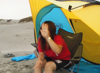 ビーチテントを設営し、さぁさぁ入水!フミちゃんはビデオ撮影に徹するのだ!