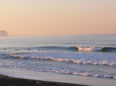 とりあえず出来なくはないので、帰宅後着替えて海へ。今日の波ならセレクトはファンボードかなぁ…。最近こればっかりだ。辻堂第二方面で入ろうと思ってたけど、人が多そうなので歩道橋前で一度入水。4~5本乗ったけど、タルいな~。しばらくしてショウくんがやって来た。オザキングも来るというので、第二方面に移動することにした。