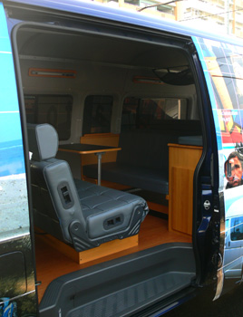 すごい種類のハイエースベースのバンコンが展示されていて、こりゃ見てるだけで楽しい[:にぱ:]出展各社とも色々な趣向・アイデアを凝らせています。