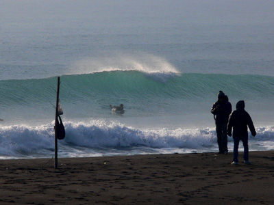 風はOKで面はキレイだったけど、いかんせんダンパー気味だった。切れたのを乗ってもドロップインが激しく、38Kもやられてた。最初のうちはまぁ切れた波もあったけど、ダンパー化が進んでイマイチ。しばらくして石ちゃんもやって来た。たま~にスゲー良い波のバチコン切れた掘れ掘れチューブレフトが来てビックリ。誰も乗ってなかったけど。インサイドは少しずれると岩が出てて、オイラも一度足を岩にぶつけて血が出た。この辺りは人が少ないと思って海に入ったりすると気をつけないとね。