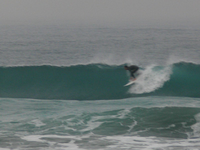 クリ、38Kが波を掴んで楽しんでいる中、オイラはなかなか乗れず…オフショアが強くて風にあおられて顔面シャワーに手こずっていた。そんな中ようやく掴んだファーストライドは、テイクオフしていきなりチューブ!1秒も入っていないけどコンパクトなリップに包まれ、「コポポ」という音をスローに感じながら抜けることが出来た(抜けた後コケたけど…)。いや~幸先のよいスタートだ!