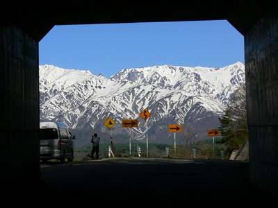 トンネルを抜けるとひろがっているパノラマビュー。見えるのは白馬連峰。