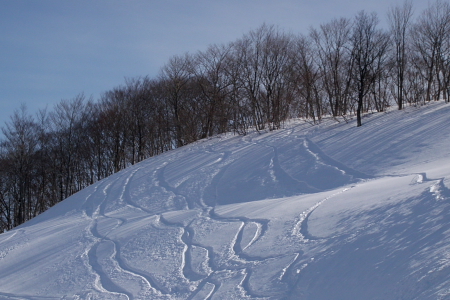 そんな谷川岳を始め、水上界隈の山々の地形を完全に把握・理解しきっている新井さんは…もちろんスノーパウダージャンキーであります。